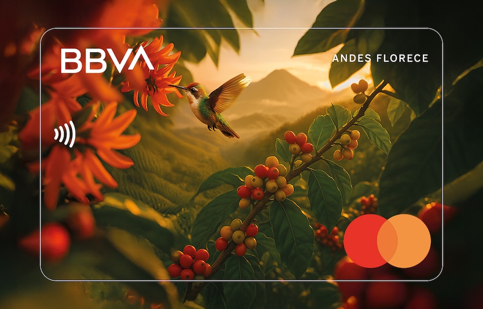 Es una tarjeta hecha con plástico reciclado, inspirada en un ecosistema de Colombia y vinculada a una causa ambiental. A través del portafolio Colombia Vive, BBVA busca conectar las decisiones cotidianas con la conservación de la biodiversidad del país.